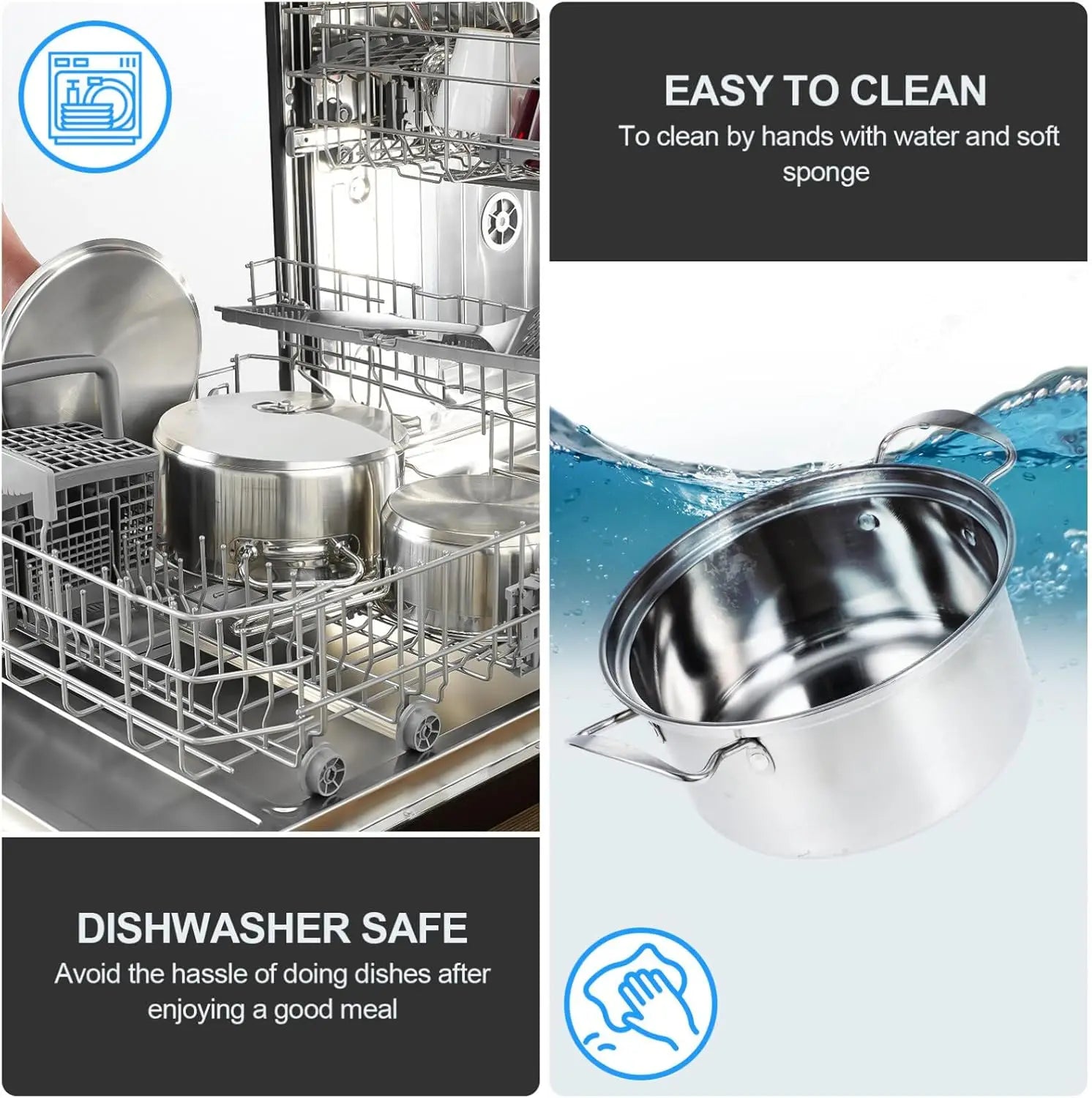 • 🧽 Easy to Clean & Maintain: Non-stick interior and polished exterior make washing a breeze. Simply rinse with warm water or wipe clean after use. Dishwasher-safe for added convenience.