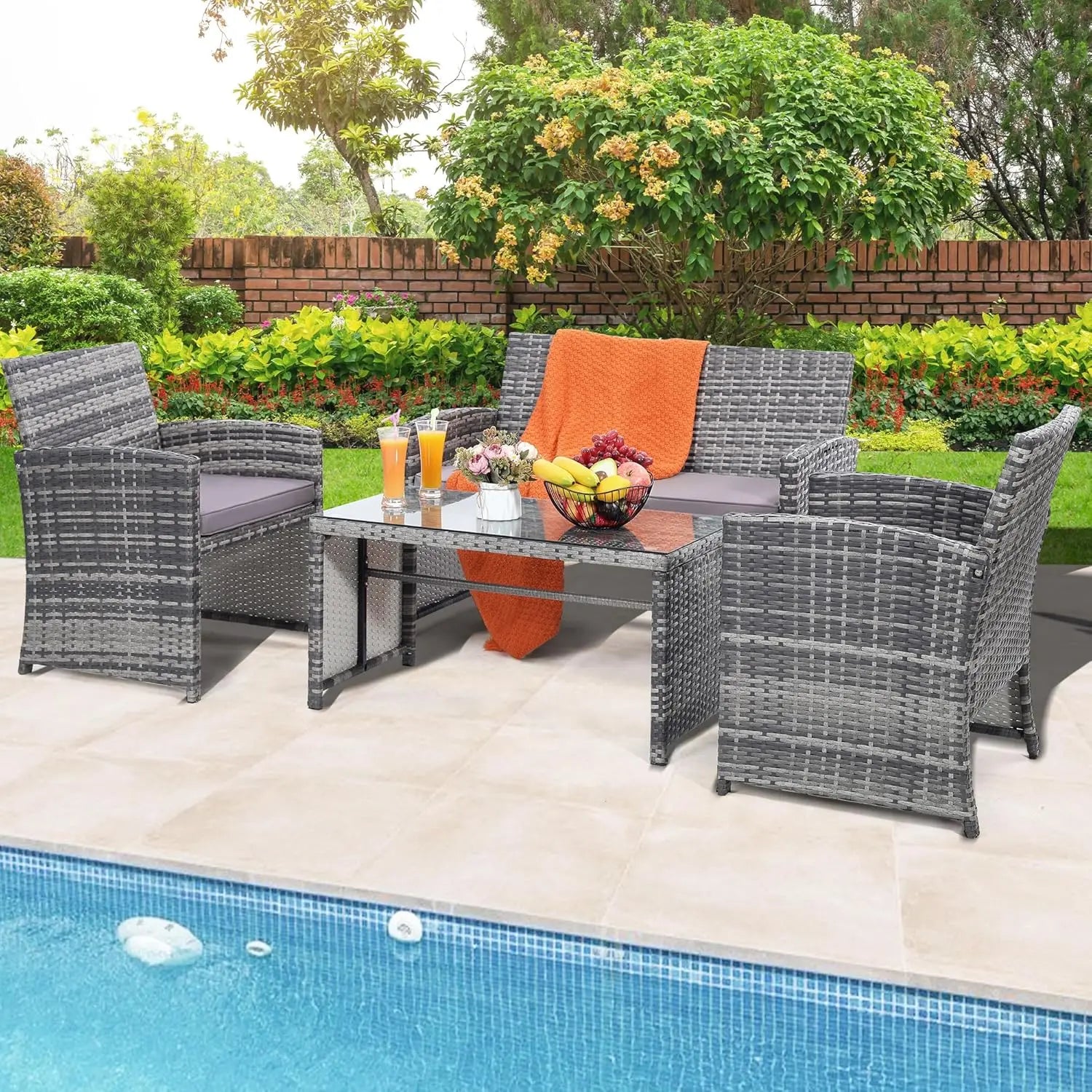 4 Pieces Rattan Patio Furniture Set