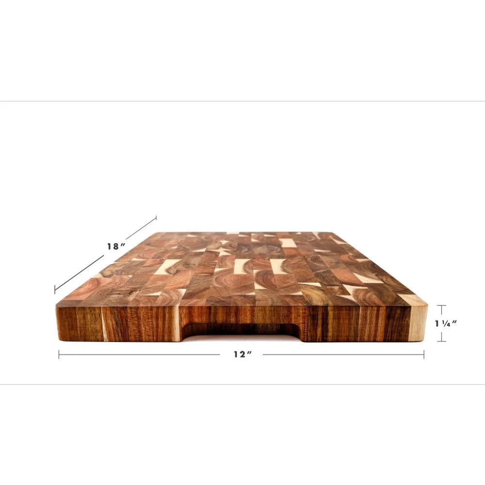 18" Gourmet End Grain Acacia Wood Cutting Board – Durable, Elegant, and Blade-Friendly