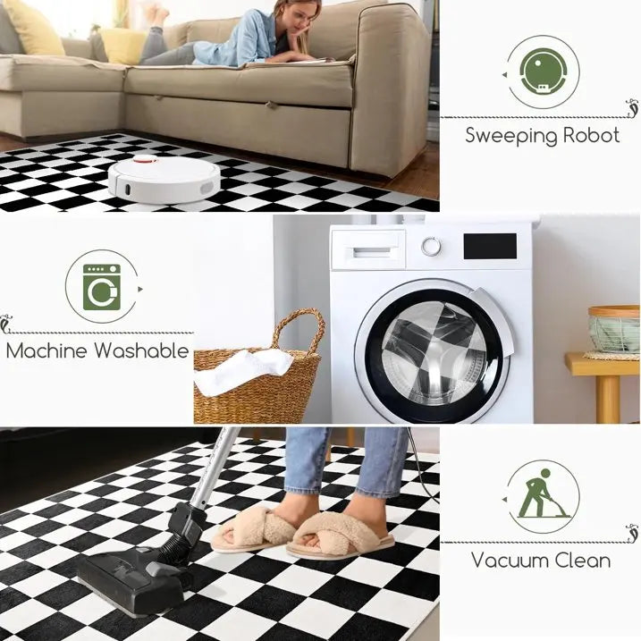 Functional & Versatile: With its modern checkered design and soft texture, this area rug suits any interior—from living rooms and bedrooms to entryways, kitchens, RVs, or patios. It’s a versatile piece that adds warmth, comfort, and style wherever it’s placed.