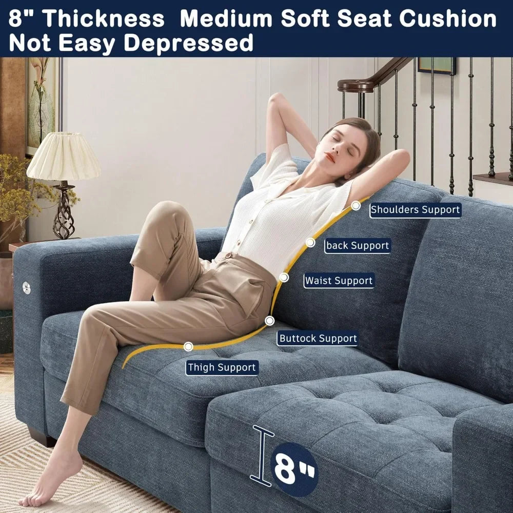 Modern 89" Sofa with USB/Type-C Ports – 3-Seater Couch for Small Spaces, Chenille Fabric, Medium Firm Cushions, Removable Covers, and Wide Armrests