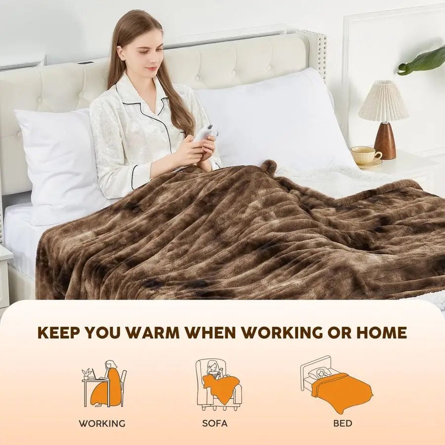 Faux Fur Soft Heated Throw Blanket