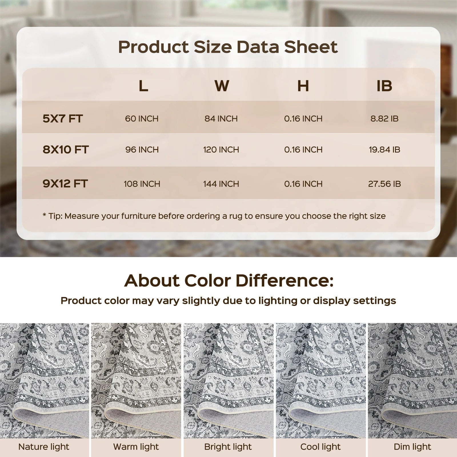 Large Size for Spacious Rooms: Measuring 9x12 ft (270×365 cm), this oversized area rug is ideal for wide living spaces, bedroom suites, cloakrooms, and luxury décor layouts—instantly elevating the entire room.