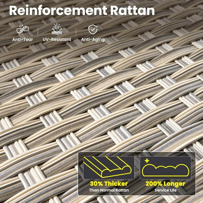 Crafted from durable, fade-resistant PE wicker, this outdoor sofa set is built to withstand sun, rain, and changing weather conditions. The premium rattan features a natural texture and rich color tone, while the powder-coated steel frame ensures long-lasting strength and stability.