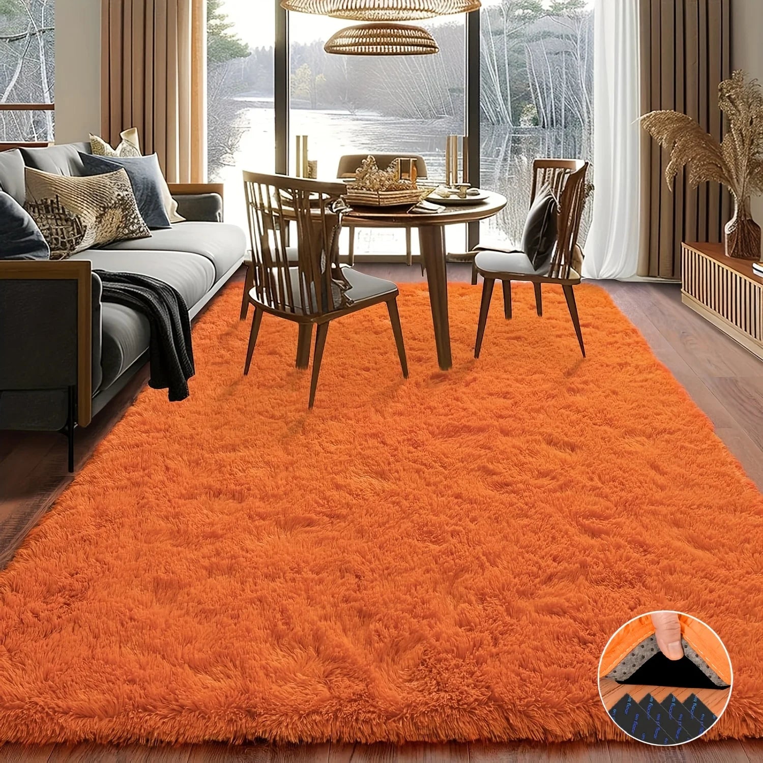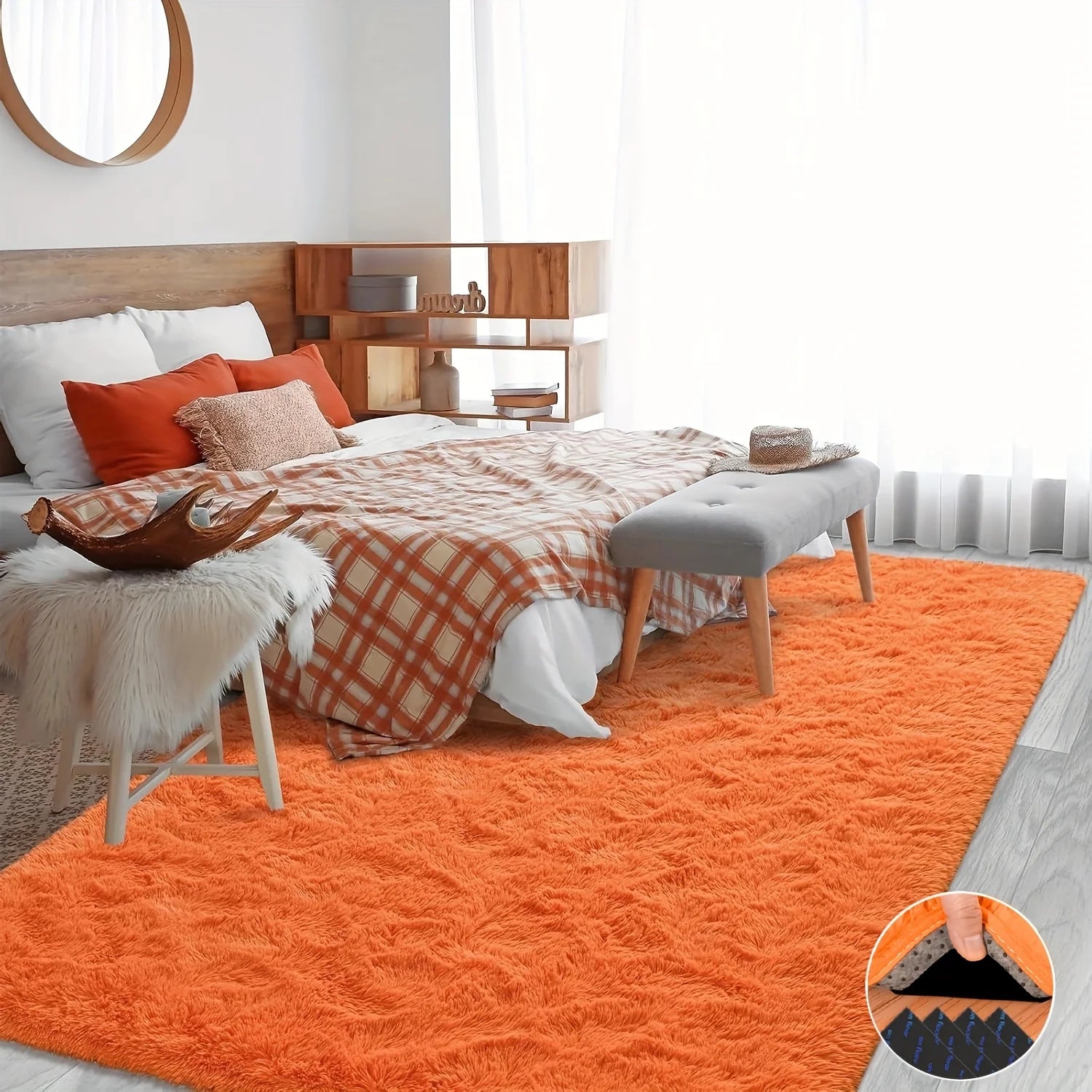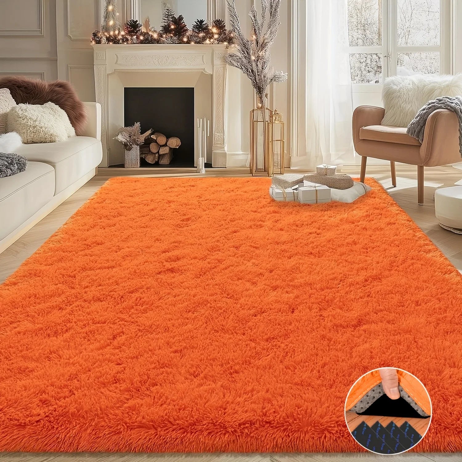 Luxury Plush Orange Soft Shaggy Non-Slip Decor Rug