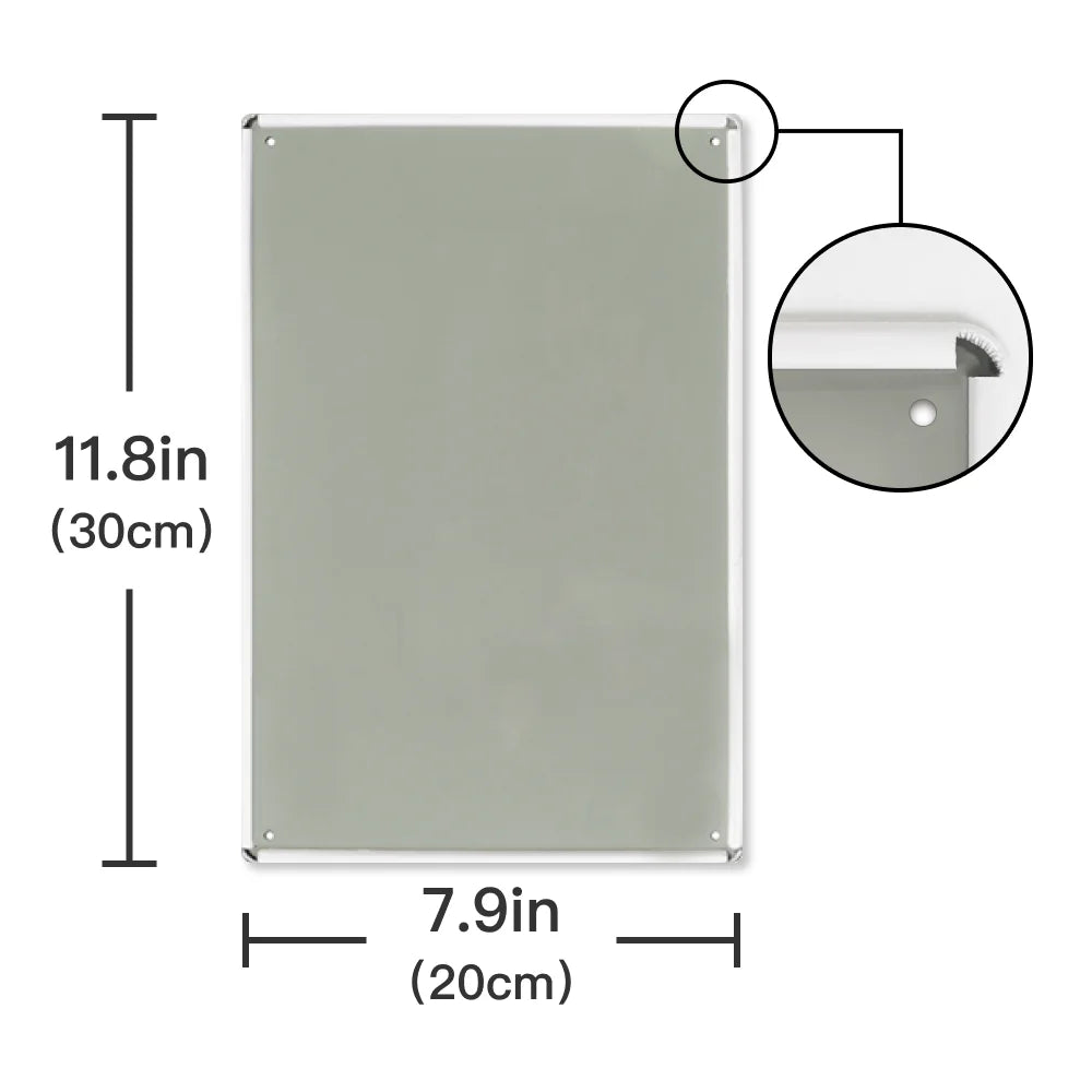 Measuring 7.8 × 11.8 inches (20 × 30 cm), this tin plaque features a full-color, long-lasting finish designed to retain its vibrant look for years of display.